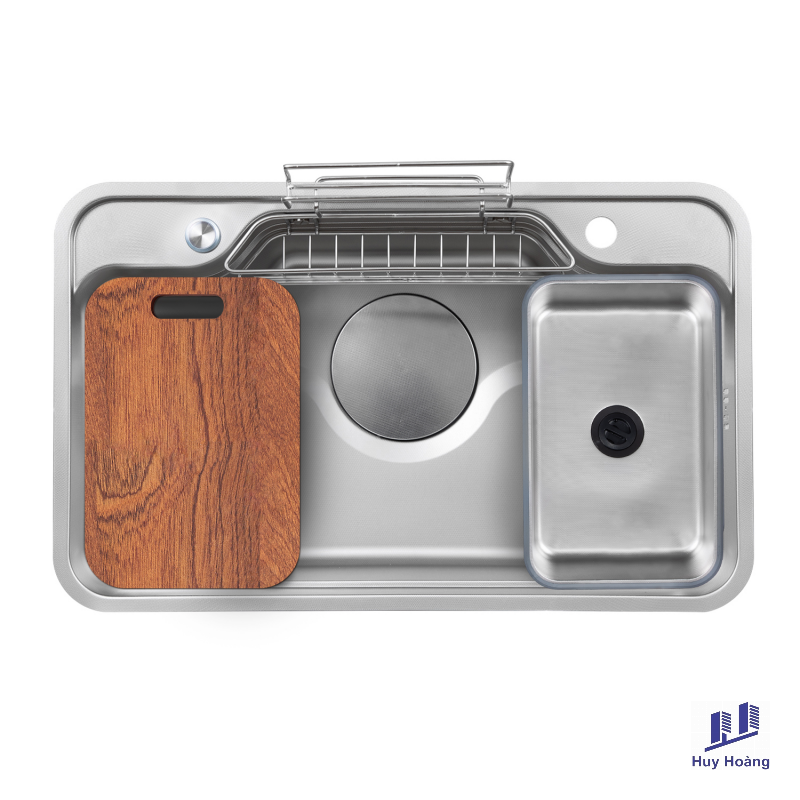 Giỏ đựng đồ inox 304 thiết kế phù hợp với kích thước và hình dạng của chậu, là một giải pháp thông minh để tận dụng không gian trong chậu và giữ cho đồ dùng như bàn chải, xà phòng và thớt gỗ được sắp xếp gọn gàng và tiện lợi.