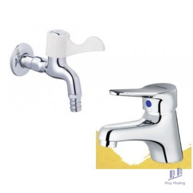Combo Vòi Lavabo Và Vòi Gắn Tường Caesar B101C + W027C