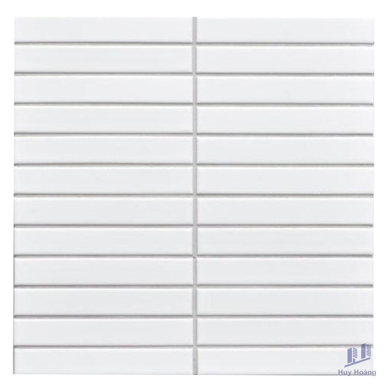 Size: 296x300mm/vỉ, 22x145mm/viênChất liệu: PorcelainBề mặt: Mosaic thanh nhỏ / Trắng mờĐộ hút nước: <0.05%Ứng dụng: Trang trí cho tường Mosaic là một