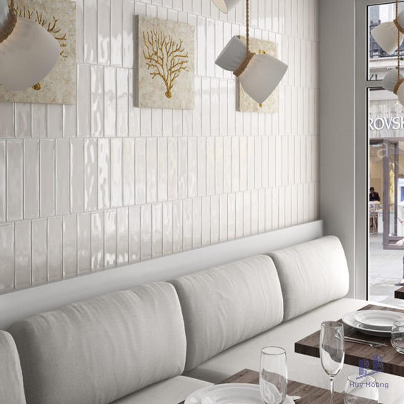 Size: 75x300mm/ ViênChất liệu: CeramicBề mặt: Trắng bóng / Gợn sóngĐộ hút nước: 13-14%Ứng dụng: Trang trí cho tường.