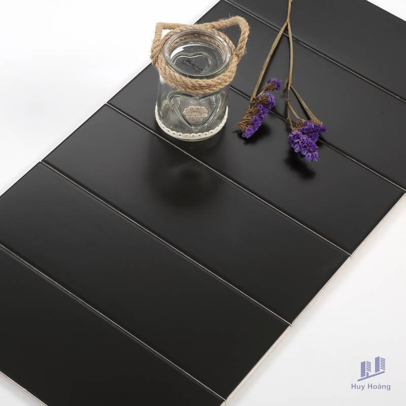 Size: 75x300mm/ ViênChất liệu: CeramicBề mặt: Mờ / Không vát cạnh, Đen mờ phẳngĐộ hút nước: 13-14%Ứng dụng: Trang trí cho tường.