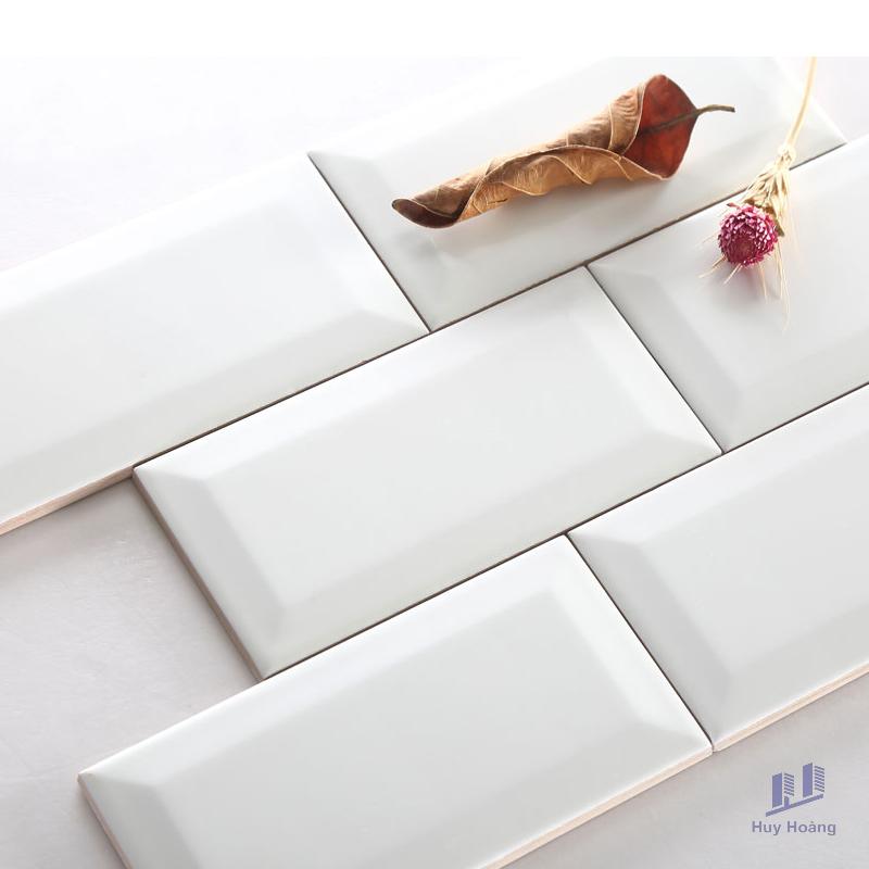Size: 100x200mm/viênChất liệu: CeramicBề mặt: Trắng mờ, vát cạnhĐộ hút nước: 13-14%Ứng dụng: Trang trí cho tường.