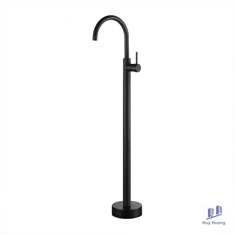 Loại: Vòi đứng xả bồn tắm.Chất liệu: Hợp kim đồng.Bề mặt: Mạ PVD Black.Thiết kế: Thân vòi bo tròn, đầu vòi cong.Chức năng: Nóng – Lạnh, Xoay 360 độ.Vò